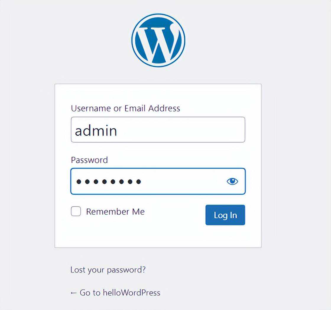 部署完成后,跳转至登录页面,输入管理员的用户名、密码,即可登录WordPress。