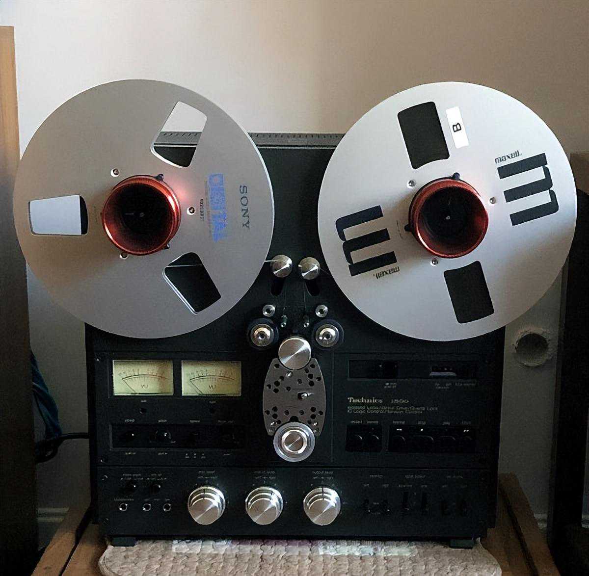 上图是一台松下早年生产的落地式开盘机,专门提供音像部门使用的。自带喇叭,可以同步监听录音效果。