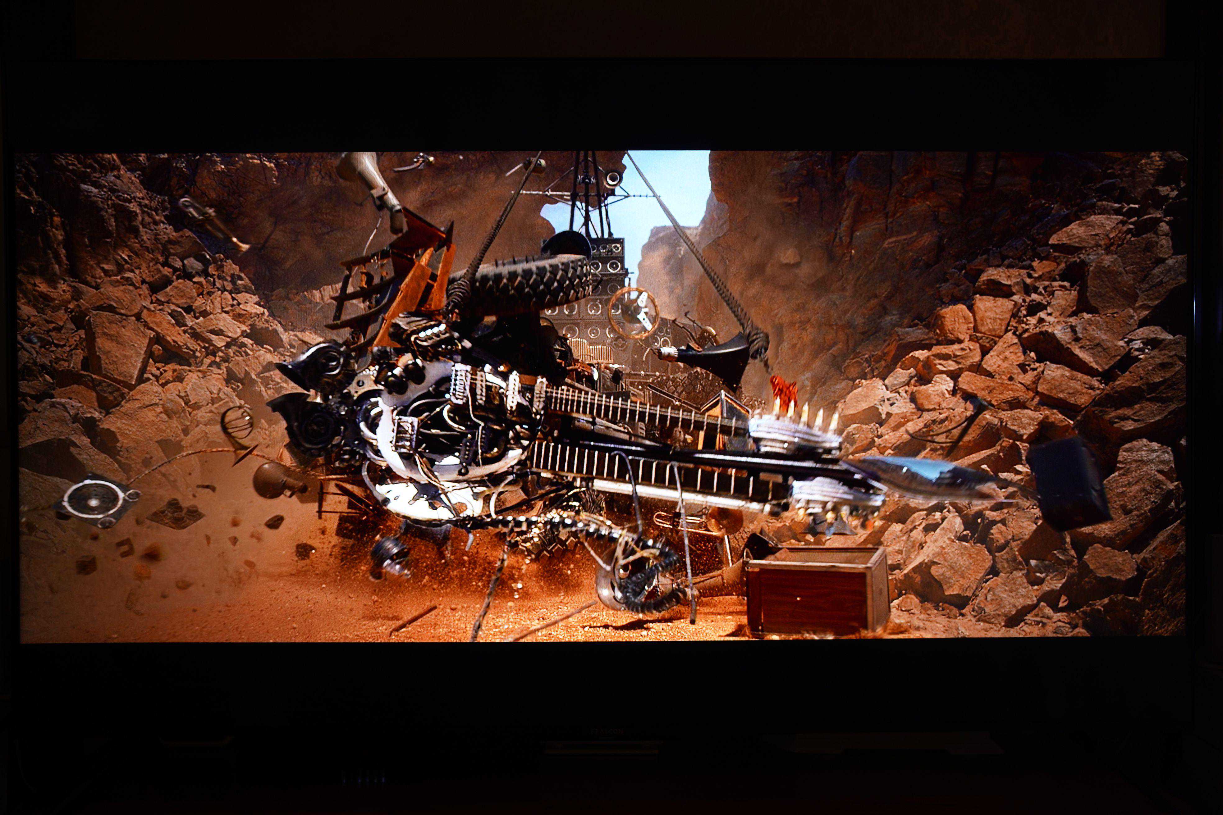 ▼在120个背光分区、峰值亮度750nit、94%P3色域的加持下,以电视为核心的家庭影院在播放电影时能达到什么样的效果呢?我拍摄了静态图片以及播放多部蓝光原盘HDR影片的照片,未对照片做任何调整,大家直观的可以感受一下: