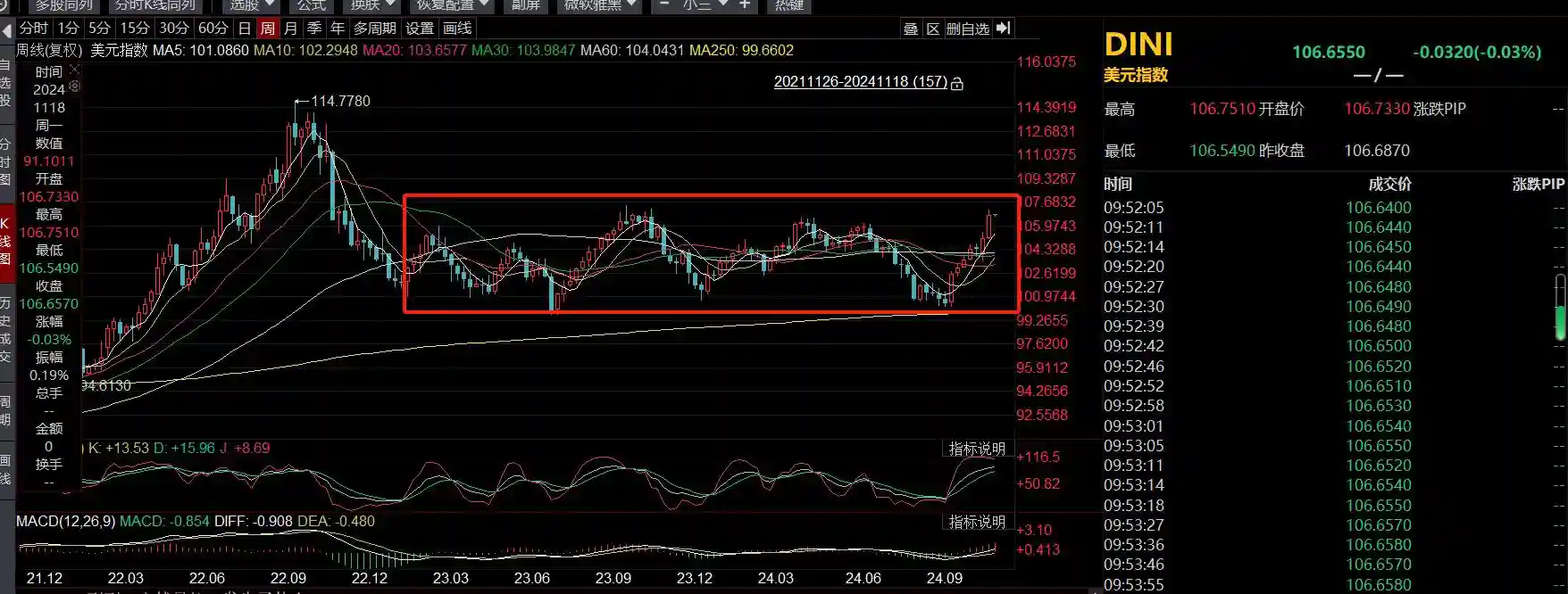 当美元走到箱体上沿时,基本也就不大可能继续走强了,否则美国自己也受不了。