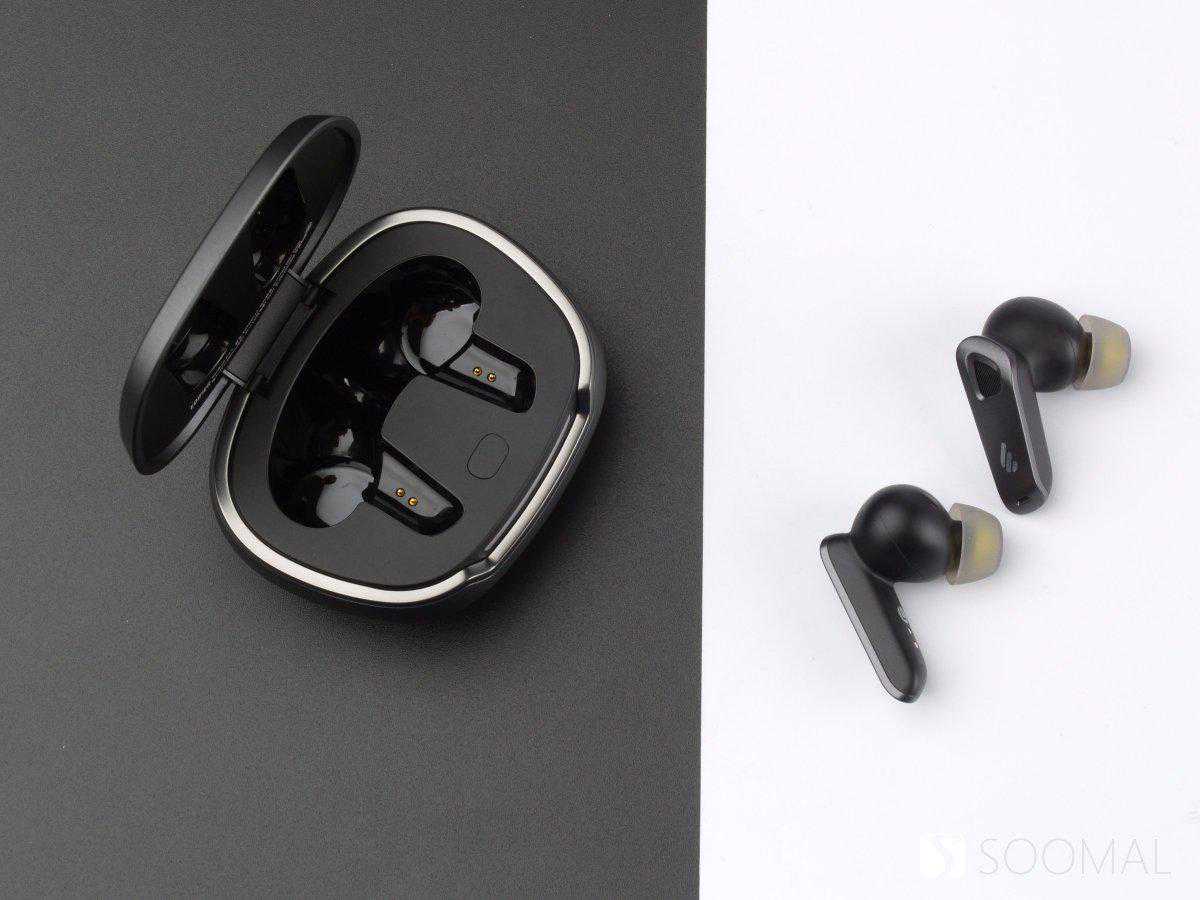 耳机的造型则变化不大,采用豆芽型设计,除了拾音窗较大了之外,并没有明显的外形特征。保持了入耳墙角设计,配合合适的硅胶耳套,舒适度和佩戴稳定性都可以保持较好水平,长时间佩戴也不会有明显的顶胀感,也有部分用户反应造型近似的一代产品戴起来并不是很舒服。NBP2标配了7套硅胶耳套,其实有点多了,不妨将其中三副换成记忆海绵塞会适合更大的人群。