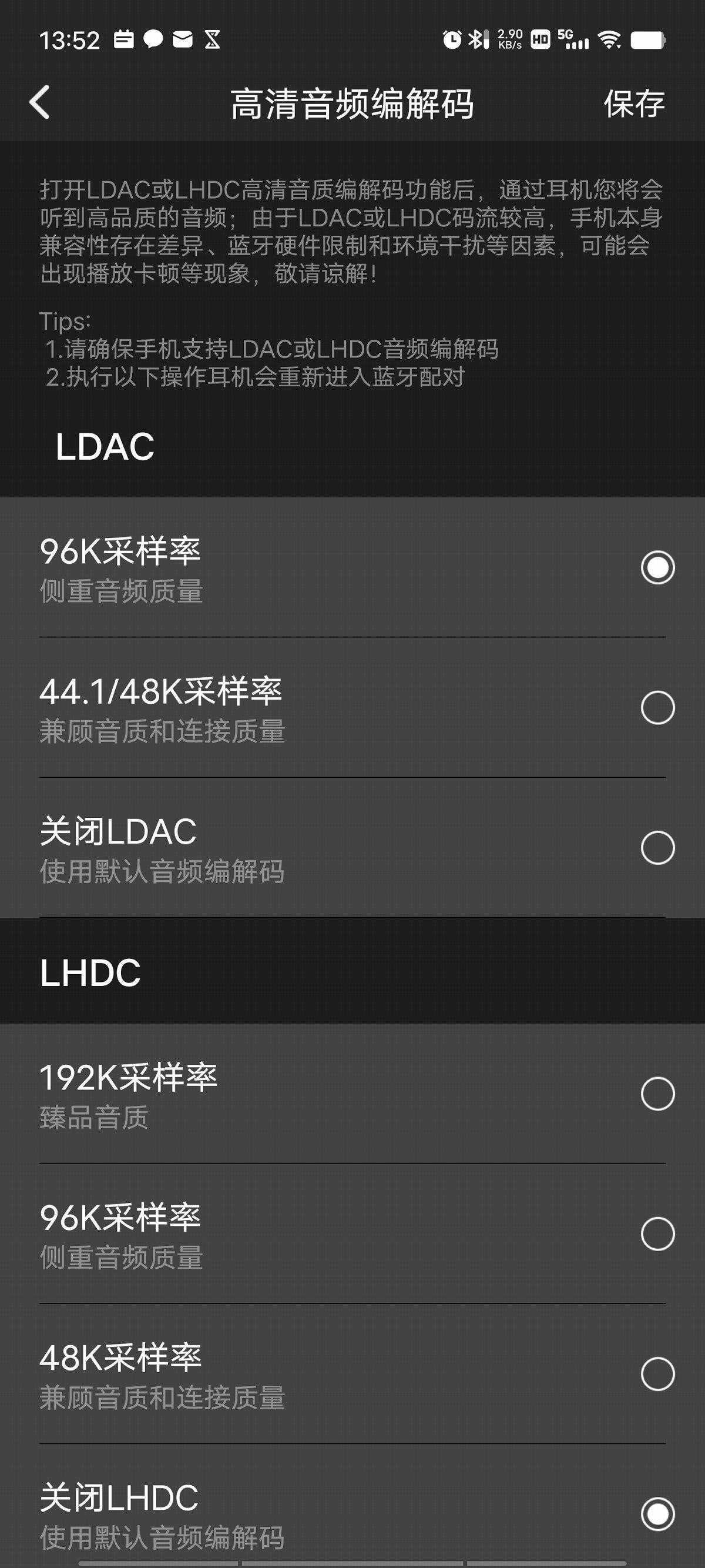 NBP2依然提供了“纯正”、“动感”、“发烧友”三种模式,“纯正”就是漫步者所理解的,偏向传统听音观的HIFI口味,“动感”模式会略微两头翘,这是当前部分年轻人们喜欢的口味,“发烧友”模式就是基于“纯正”的可自定义EQ的模式,提供了4个可调频控制点,并且可以设置Q值,这是一种比较高级的EQ控制模式。在煲机20小时后,低频有改善,进入实听环节。实听时使用的是“纯正”模式,关闭了主动降噪,使用的LDAC通讯,为什么不用LHDC呢?因为LDAC的普及率大得多,使用LDAC更能反应NBP2配合绝大部分Android手机时的表现。对比设备自然是老款的NBP。
