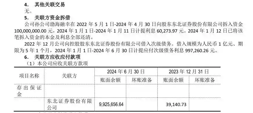 渤海期货2024年半年报显示,渤海融幸在2022年5月1日-2024年4月30日向东北证券拆入资金1亿元,2024年1月1日-2024年1月11日计提利息60,273.97元。2024年1月12日已将该笔拆入资金的本金及利息全部还清。