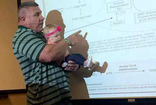 近日,美国莫尔豪斯学院一位教授因在课堂上替学生照看宝宝而在社交媒体上走红。阿塞塔的爸爸韦恩•海耶因为无法找到临时保姆,只好把女儿带到了内森•亚历山大教授的代数课堂上。