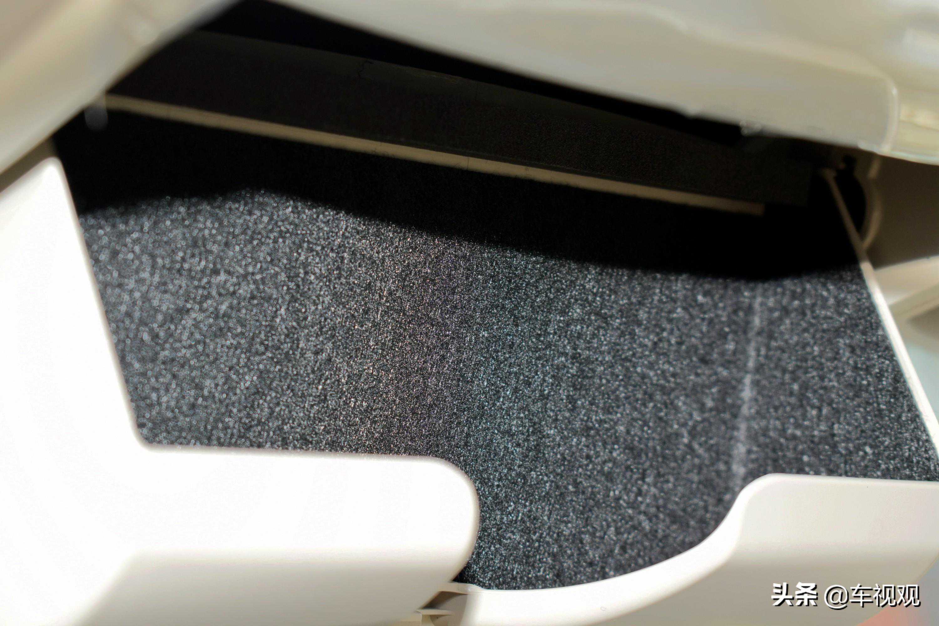 副驾驶手套箱空间合适,如果内部有植绒处理就会更加的上档次了。
