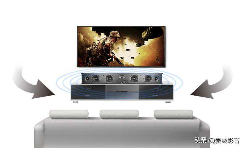 与电视机完美匹配,多种音频接口,满足不同需求的你。“拥抱式环绕”模拟技术,高度解决没有环绕扬声器安装空间,及没有预先环绕布线的玩家。瞬间将客厅、卧室、书房等空间升级为宅影院。