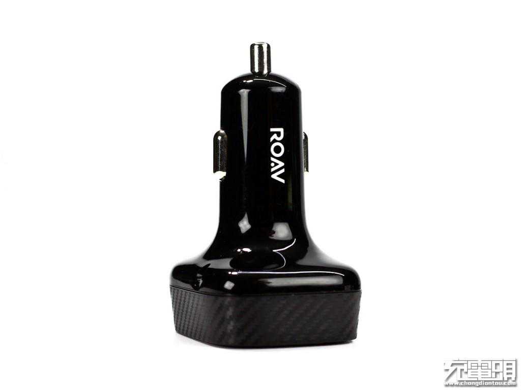 外观方面,插入点烟器口的部分为亮面处理,上面丝印“ROAV”的品牌logo;靠近接口部分的外壳为晒纹处理工艺。