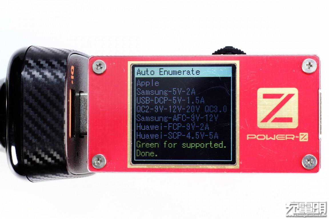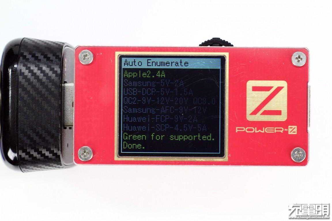 使用ChargerLABPOWER-ZFL001SUPER检测上面的输出接口支持充电协议。