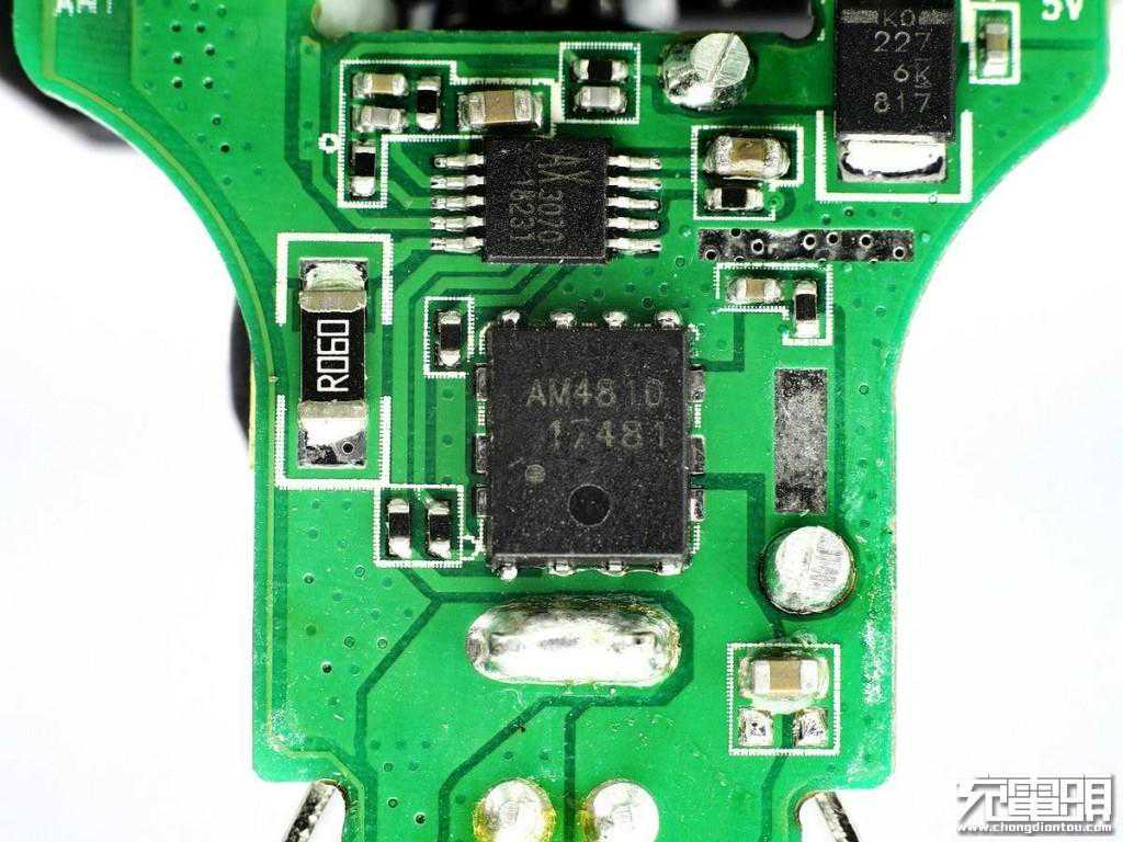 丝印AM481017481为双mos,用来同步整流降压输出。其上方丝印AX3070是一款降压PWM控制器,来自亚瑟莱特。
