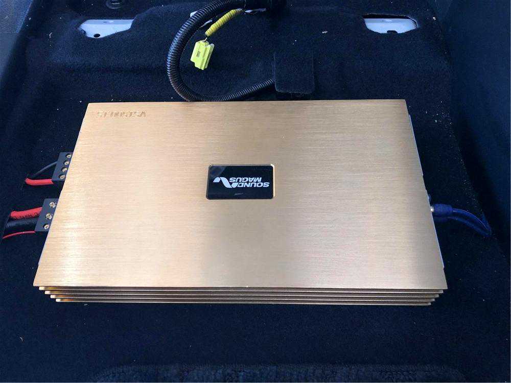使用黄金声学GS-680DSP处理器材,既能提高原车主机的解析力,该DSP为前声场提供主动三分频,后声场使用原车主机推动。