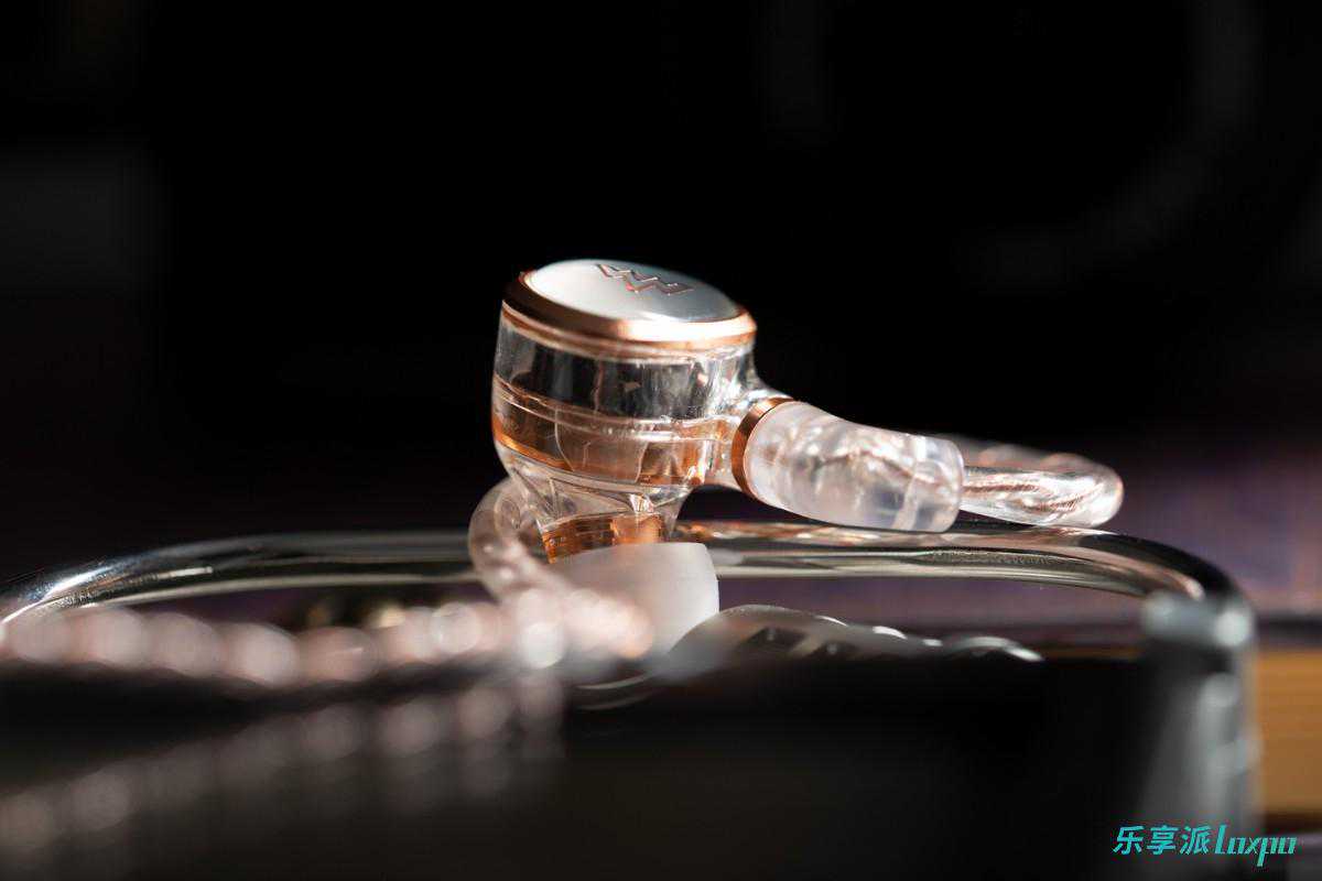 耳塞面板为磨砂银,表面覆盖高透滴胶,在不同角度下观看,会有珍珠般的质感;外框为铝镁合金材质,表面金属铜色;而主腔体是透明材质,可以看见内部单元。