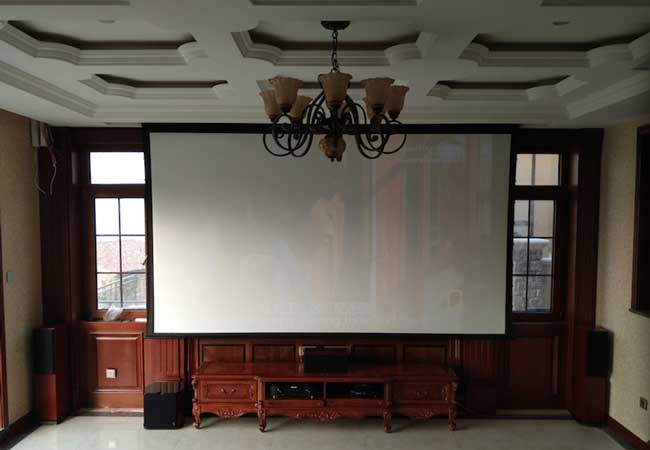 客户打算夏天搬到海边院子里去看,因此投影机并没有采纳我们吊装的建议。窗帘暂时没有