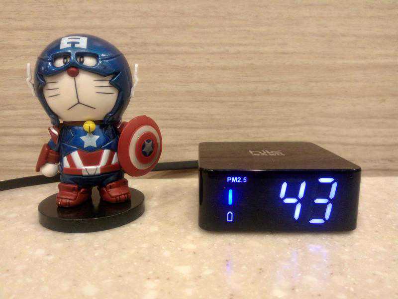 1.在室内开启空气通S1进行监测一下其空气质量,立即显示数值为43,空气质量为良好状态,和网上显示的差不多,适合外出活动,呼吸新鲜空气。