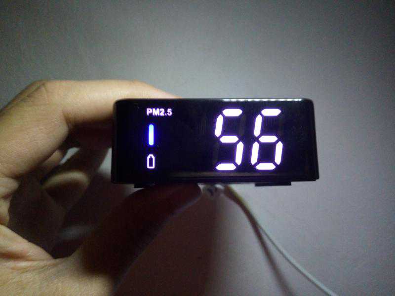 正面是个LED显示屏,开机后即可显示实时数据,左侧竖条是空气污染等级的指示灯,不同颜色显示代表等级,依次显示为绿、蓝、红三色,而右侧则是当前环境下,所检测的数值。电量不足时,有电池标志闪烁提醒,但没有时间、湿度等数值显示。
