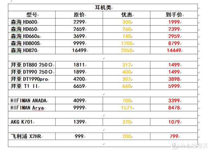 对于耳机类,基本也就那几个牌子了,森海塞尔啊、拜亚动力啦、AKG啦、飞利浦这几个热门的品牌。下面的表格可以看到基本信息,发现旗舰类优惠最大,但是——依旧买不起。