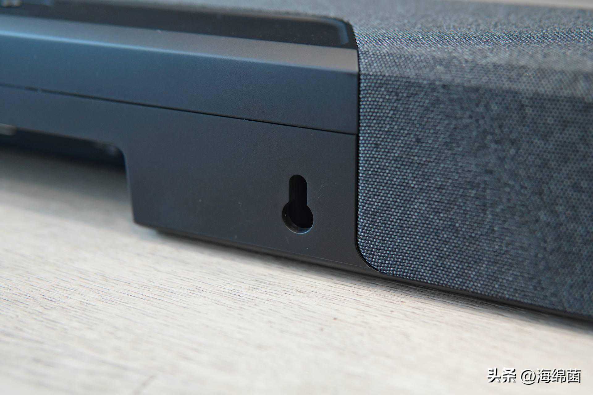 值得一提的是,这款回音壁是有液晶屏设计的,隐藏在正面网罩下方,只有操控的时候才会点亮,有一种隐藏的高级感。