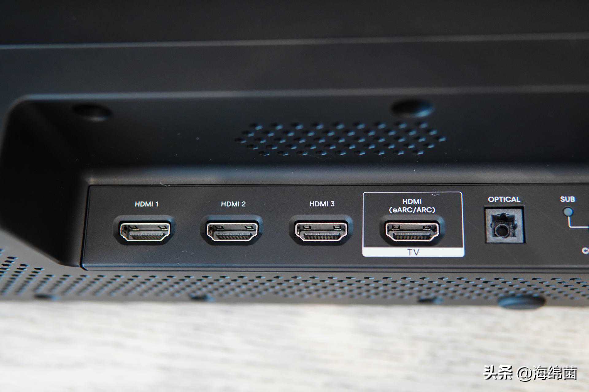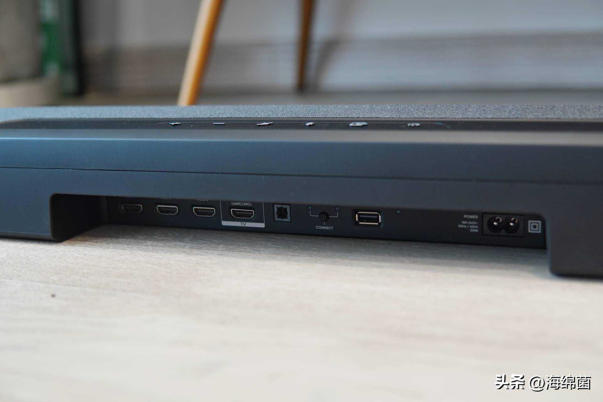 实用性上,这款回音壁搭配了3进1出的HDMI接口组,可以同时接入三个设备,比如游戏机,蓝光播放器,各种盒子等等,相比很多单接口的回音壁,就没有了反复插拔的困扰,使用起来非常流畅。