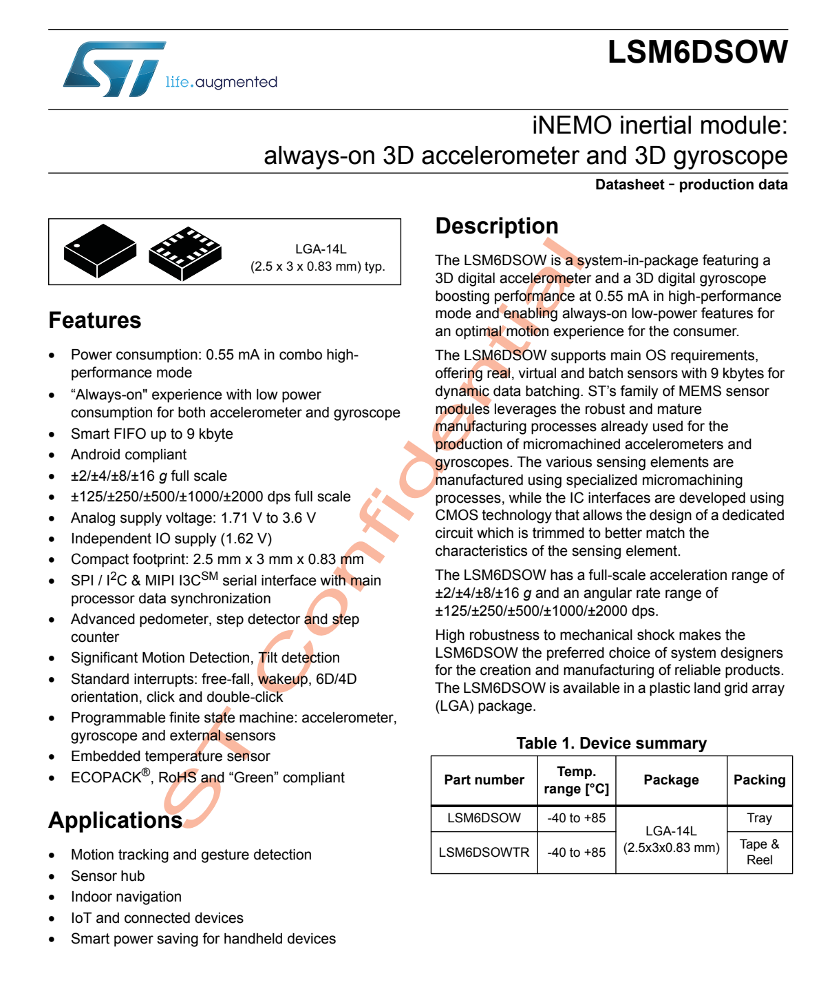 ST意法半导体LSM6DSOWTR传感器,一款支持状态机的6轴传感器,提供更丰富的交互设计补充,内置状态机用于拿起手机亮屏,运动数据追踪等功能。