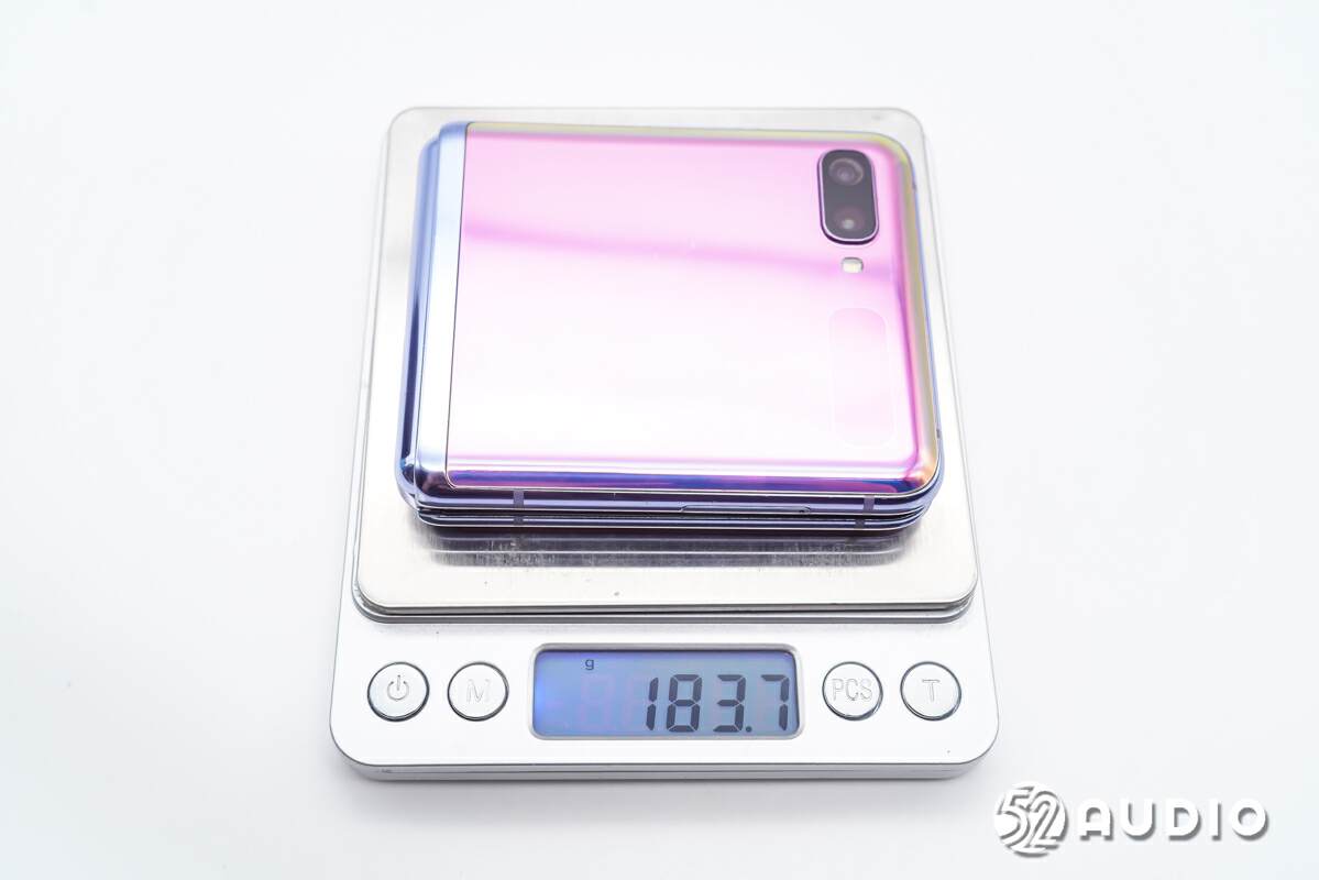 经我爱音频网实测,SAMSUNG三星GalaxyZFlip折叠屏手机重量约为183.7g。