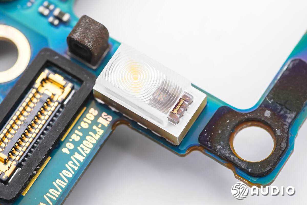 内部结构配置方面,三星GalaxyZFlip拥有着极高的集成度和模块化设计,元器件之间均通过连接器连接,便于生产组装和后期维修;上下腔体内主副板之间通过一条主排线穿过铰链连接。上方腔体内置主板单元和三星视界900mAh锂电池组,搭载通知屏幕、三摄像头、振动马达、听筒和降噪麦克风;下方腔体内置无线充电接收线圈,三星视界2300mAh锂电池组,以及扬声器和通话拾音麦克风。