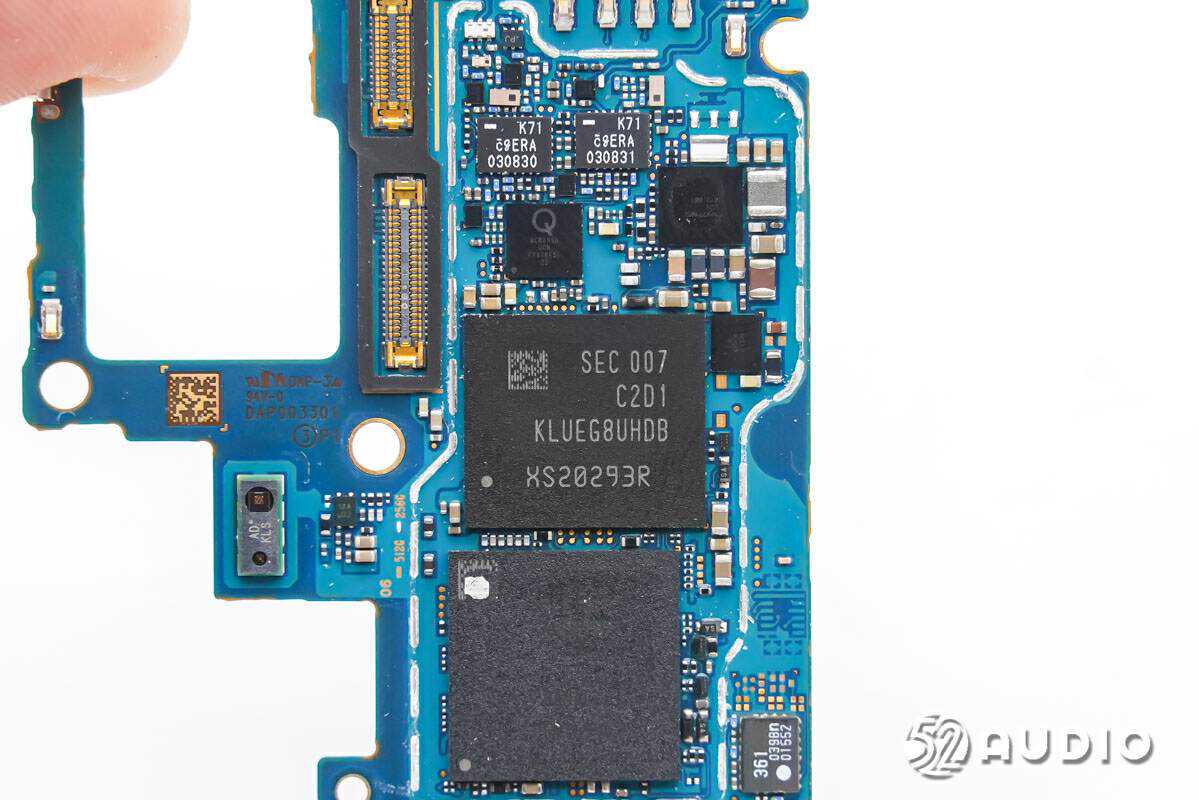 SAMSUNG三星K3UH7H7的内存,下方有Qualcomm高通骁龙855Plus处理器。