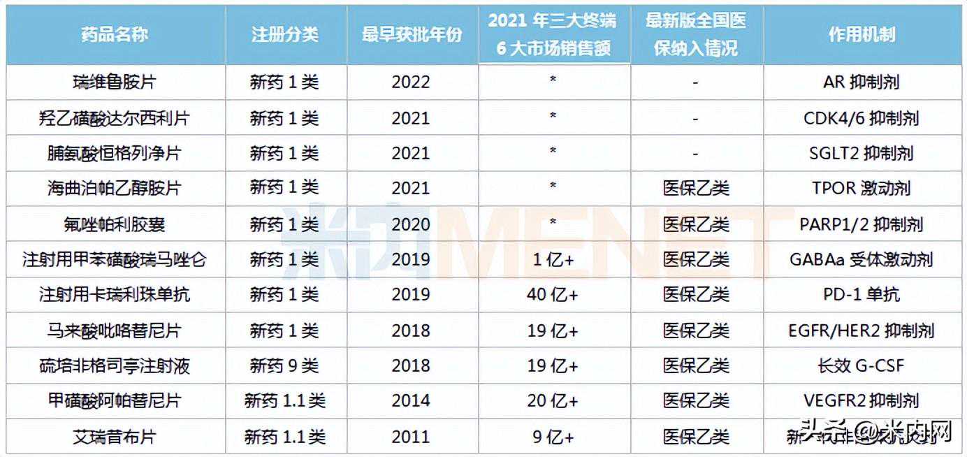 11款创新药中,8款已顺利通过谈判纳入全国医保目录,其中阿帕替尼、卡瑞利珠单抗、氟唑帕利、海曲泊帕乙醇胺纳入医保的适应症达2个及以上。