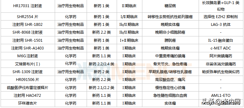 恒瑞医药新分类申报且暂无首仿获批的品种