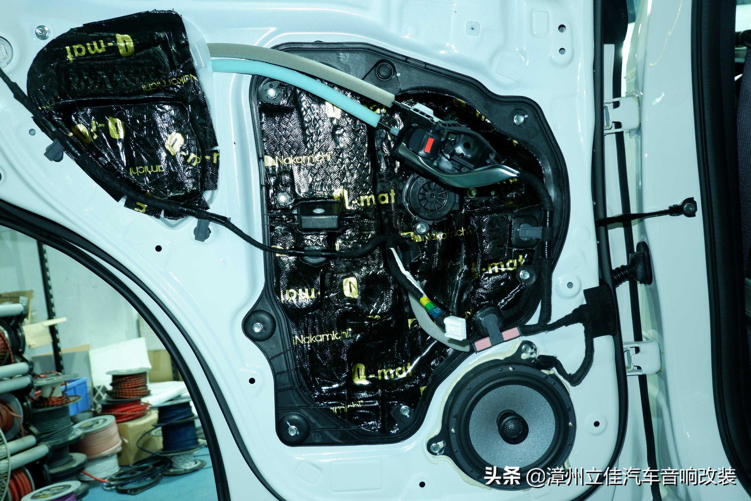 汽车行驶过程中,从车门传入车内占比大,加上原车板单薄,中道四门隔音减少车门自振同时强化了车门钣金,中道四层隔音处理大大减少了噪音传入车内。车门内板多余的空腔部分被中道减振板有效的填充,无形中给车门喇叭做了个箱体,提升了喇叭的效果。