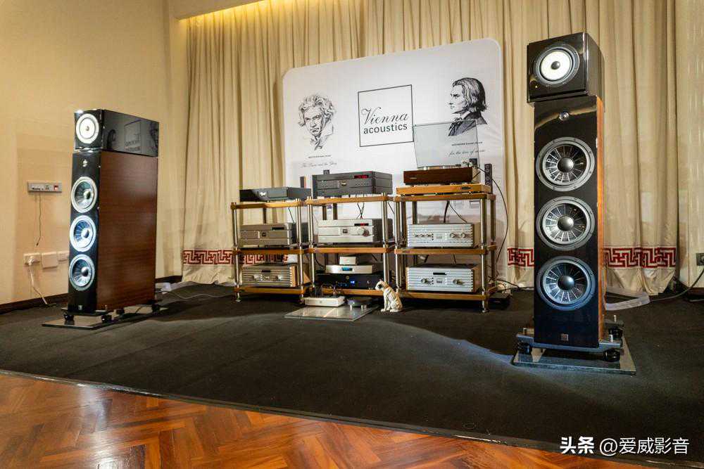 本次台湾展共分为五层,在215展厅台湾经销商展出日本Soulnote配奥地利ViennaAcoustics旗舰喇叭「TheMusic」的组合。TheMusic运用了旗下最高技术,采5单元3音路架构,其中包含一颗横跨7个8度、涵盖最重要的中高音的同轴单元。这颗同轴单元的中音部分采用ViennaAcoustics独家的Flat-Spider平面蜘蛛网振膜,平面振膜的重量极轻,背后框架则可提供强度,使其具备极为优异的重量与强度比。振膜材质是TPX复合材料,又具有最佳刚性与内阻比,再加上中央的丝质软半球高音单元,因此能轻松负担从100Hz至20kHz的宽广频率响应。