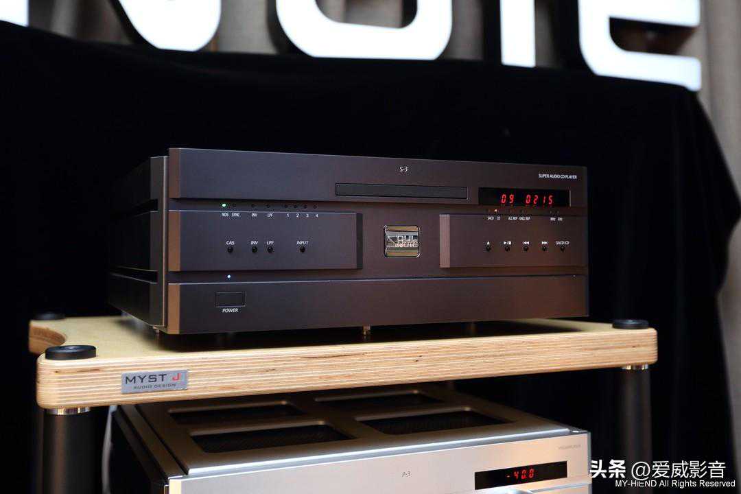 现场使用的是S-3SACD唱盘,它顶盖设计很特别,如果触摸它,会发现这块顶盖好像是没有锁紧般,会晃动。原厂透过内部的三点支撑,来避免顶盖与箱体完全接触,来减少震动。是非常独特的设计。而在内部,原厂采用了两个环形变压器,分别直立锁在左右两边特别厚侧板上,变压器与侧板的接触点以钛金属做三点接触,而且以三明治结构材料来做底部避震,透过二者距离拉远,来避免磁漏互相干扰,而且还设计完善的避震措施,是非常聪明的做法。当然,S-3还有大量的小波率电容,而且是数字、模拟线二组独立。可见原厂对电源质量多讲究。