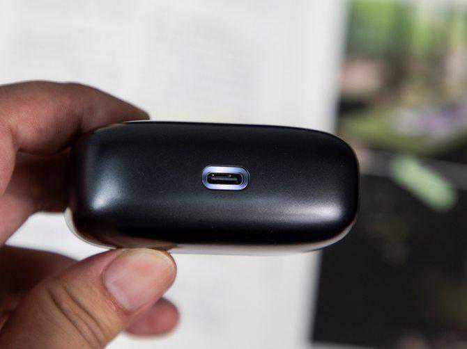 另外耳机充电仓采用了Type-C接口进行充电,同时接口下部还有白色的呼吸指示灯,在充电的时候会进行闪烁,用来提示我们耳机盒的充电状态。