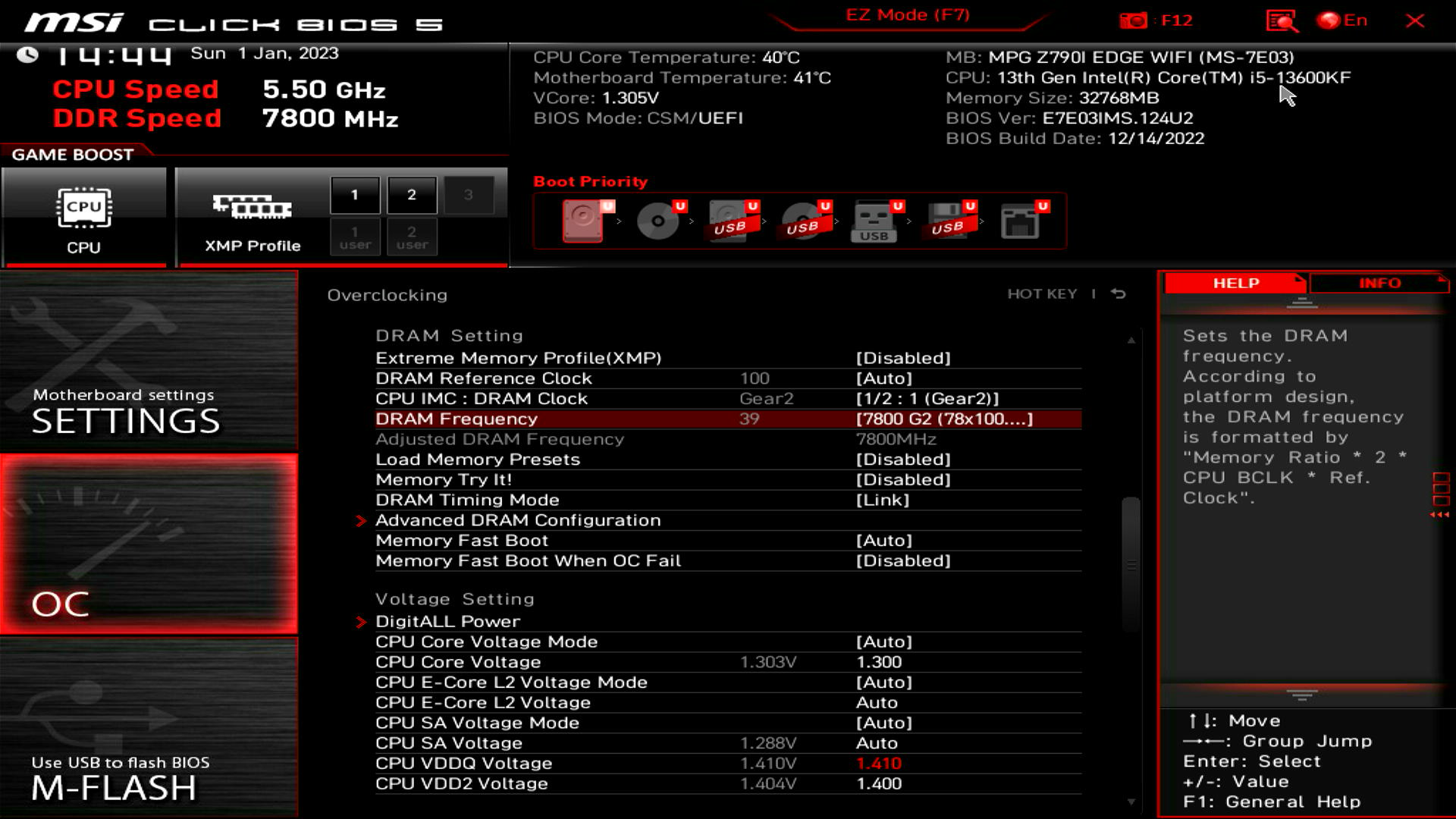 ▲DRAMFrequency选【7800G2】