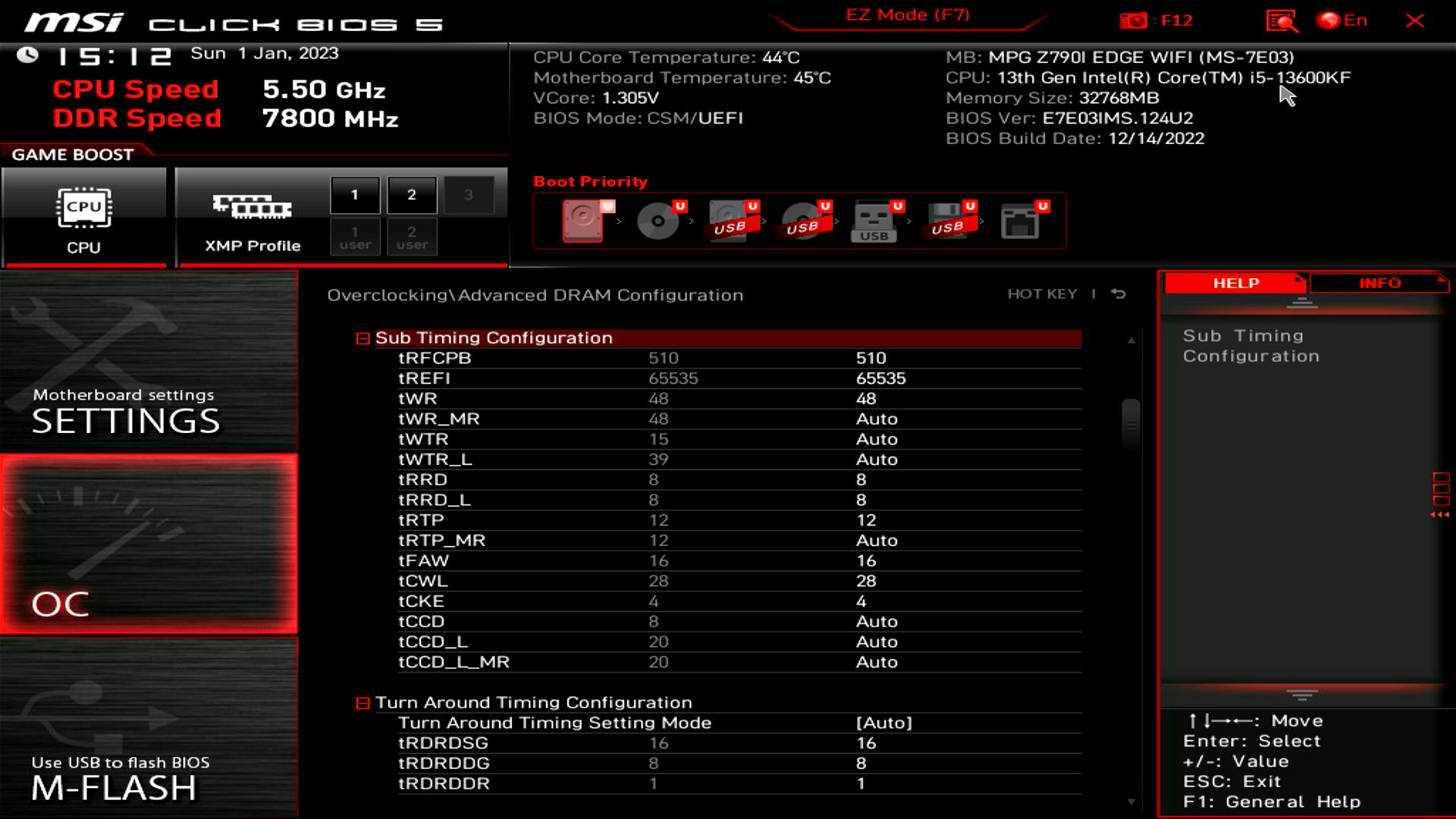 tCL34;tRCD44;tRCDW44;tRP44;tRAS58;tRFC2510;