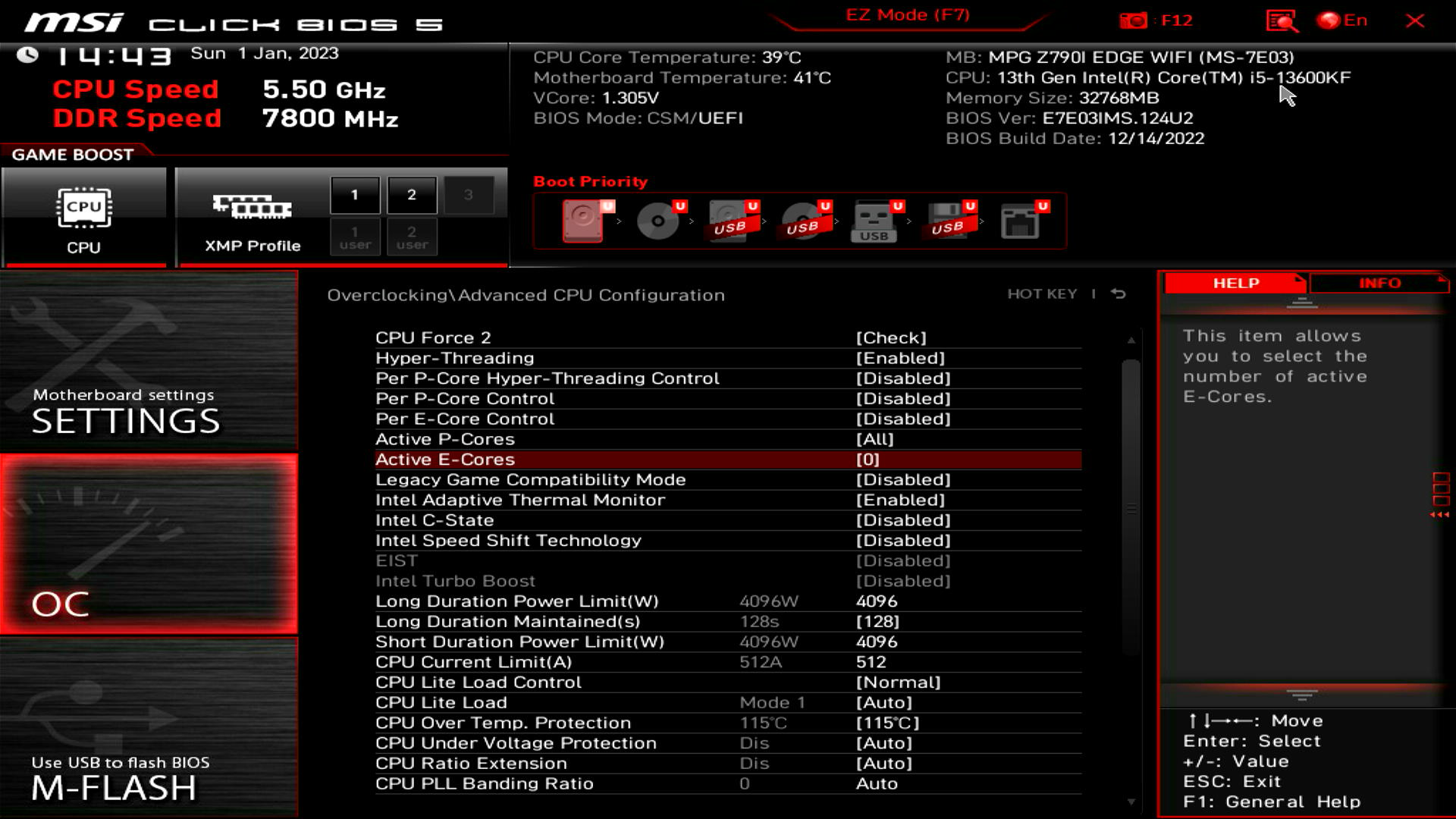 ▲ActiveE-Cores意思为激活的小核数量,这里改0即为关闭全部小核,也可以在PerE-CoreControl里,单独控制你想关闭的某个小核