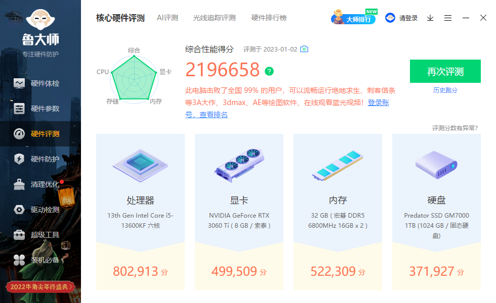 ▲鲁大师跑分
