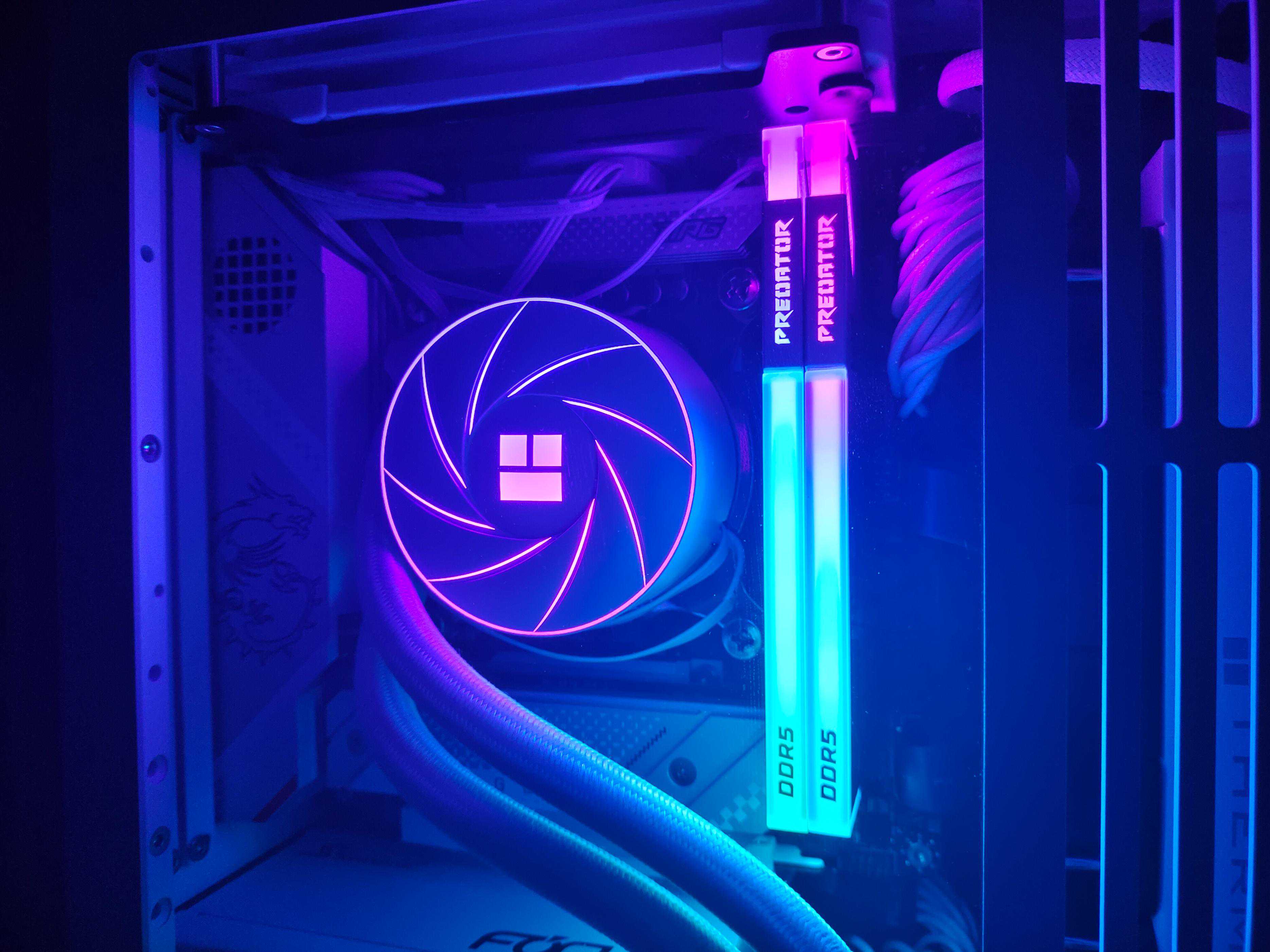 现阶段DDR5超频已相对成熟,高带宽的DDR5能弥补时序延迟上的不足,最近想升级的小伙伴可以考虑下宏碁掠夺者的VestaⅡ炫光星舰系列DDR5RGB套条,宏碁是为数不多有能力筛选颗粒IC体质的厂家,能更好地保障每个颗粒体质达到特挑平均水平,超频1GHz轻轻松松,OCPMIC无电压锁对超频新手更友好,倘若你能抢到ROG的Z790APEX主板,那么8400MHz甚至更高由您创造!RGB同步灯效更是高端主机的象征,提供氛围感一致的桌搭风格。