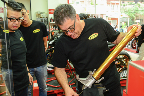 发表会结束后,Summerton特地为立升车业进行教育训练,示范重机前叉拆装保养的最佳流程。
