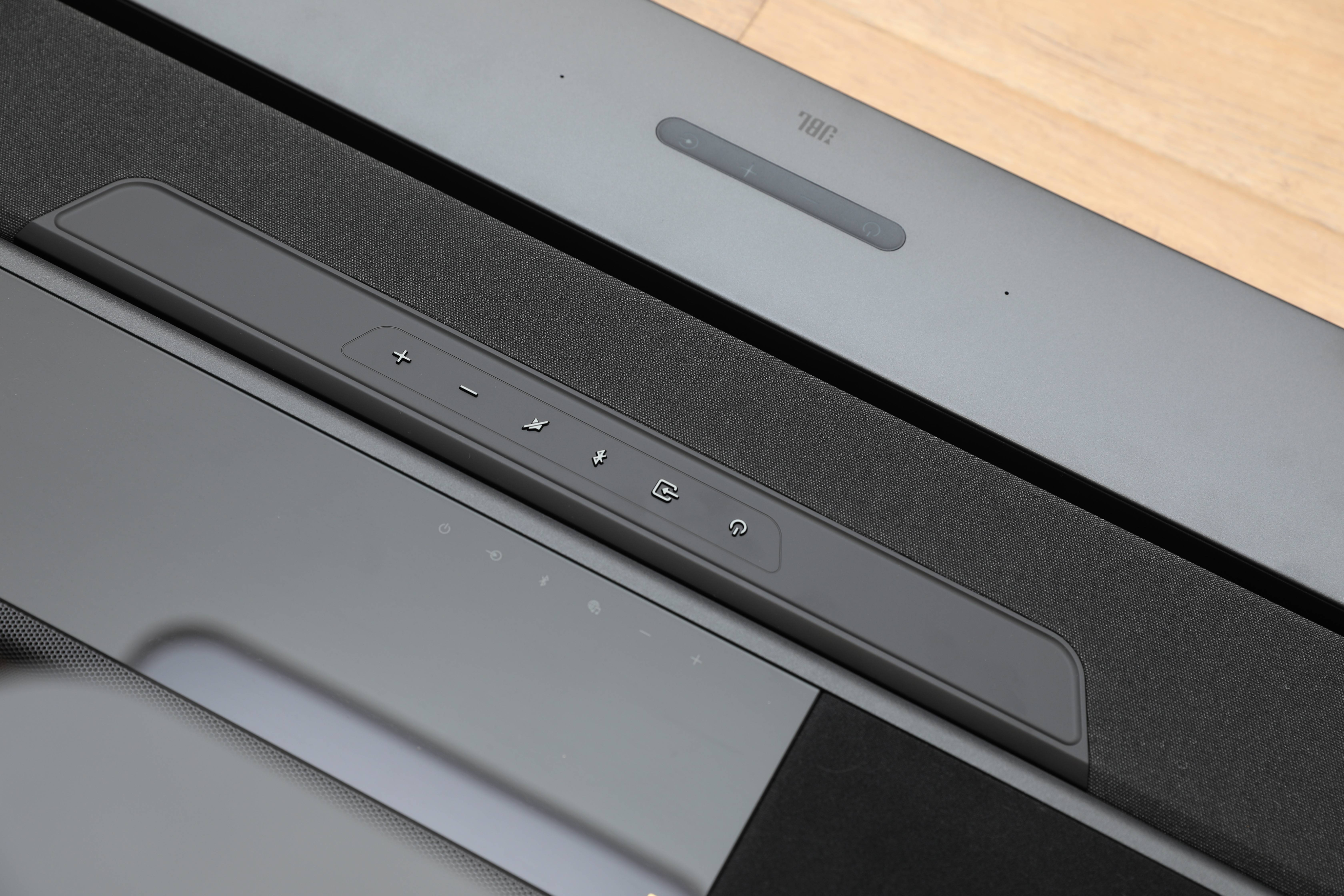回音壁的材质搭配上,三家也各不一样,索尼采用了大面积的金属网罩和玻璃面板,不同材质之间的衔接过渡也很自然;Polk则采用了多面大面积的布艺包裹,整体性更强;JBL采用了仿金属的设计,磨砂手感摸起来也很舒服,并且践行了对称式的设计语言。