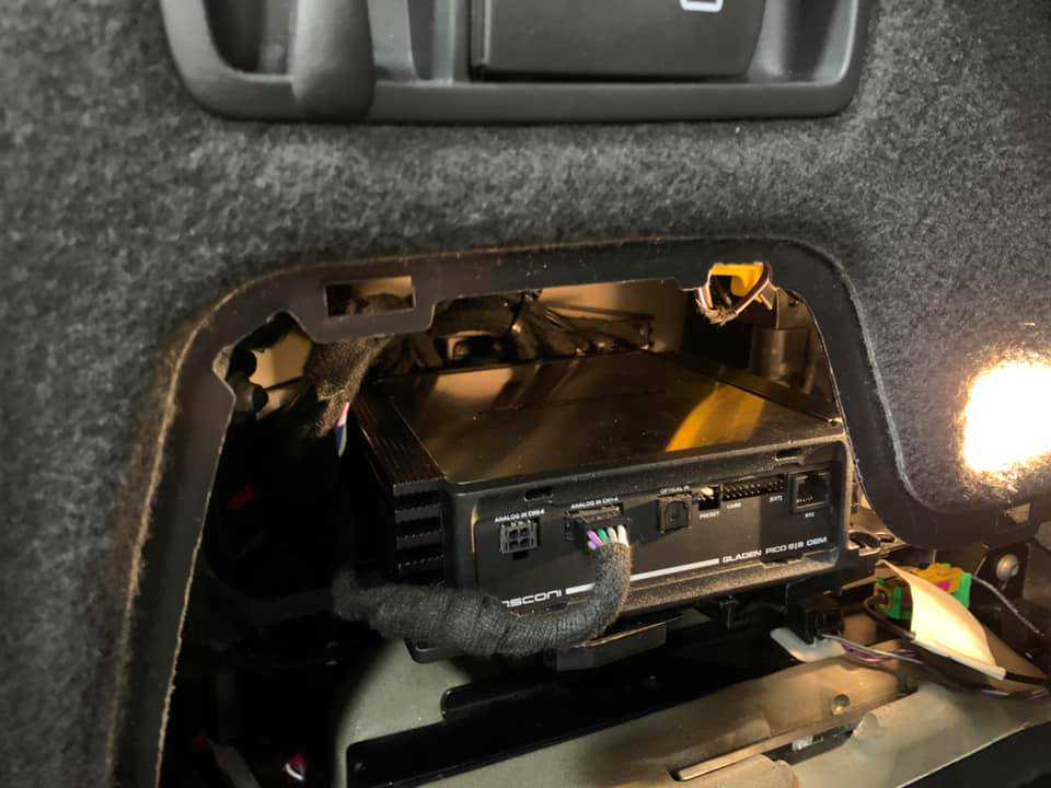 将舞仕刚柔mosconi汽车DSP功放隐蔽在后备箱侧