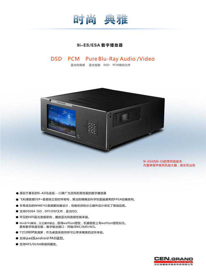9i-ES/ESA是世纪格雷新推出的两款中价位数字播放器产品。9i-ES为数字
