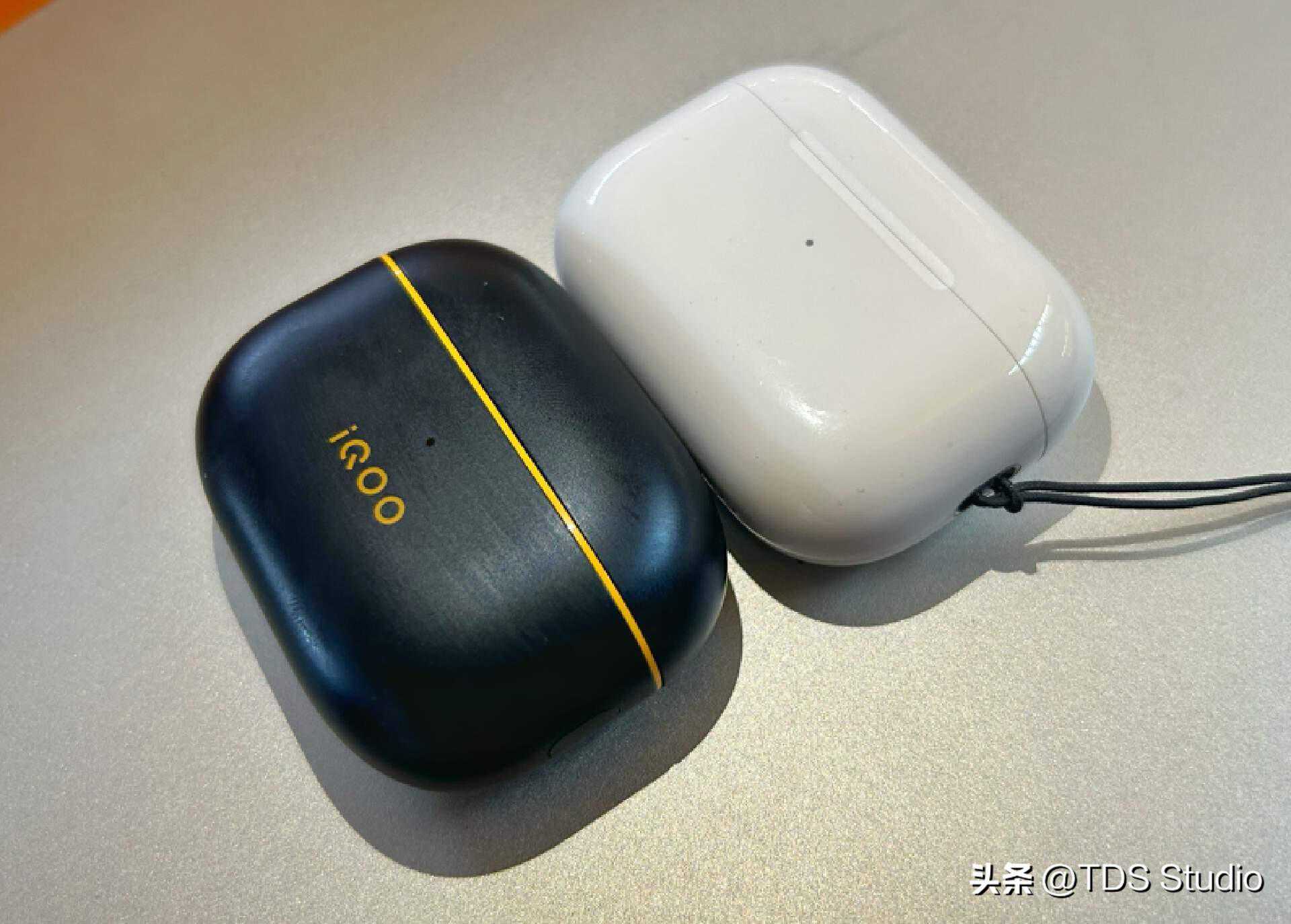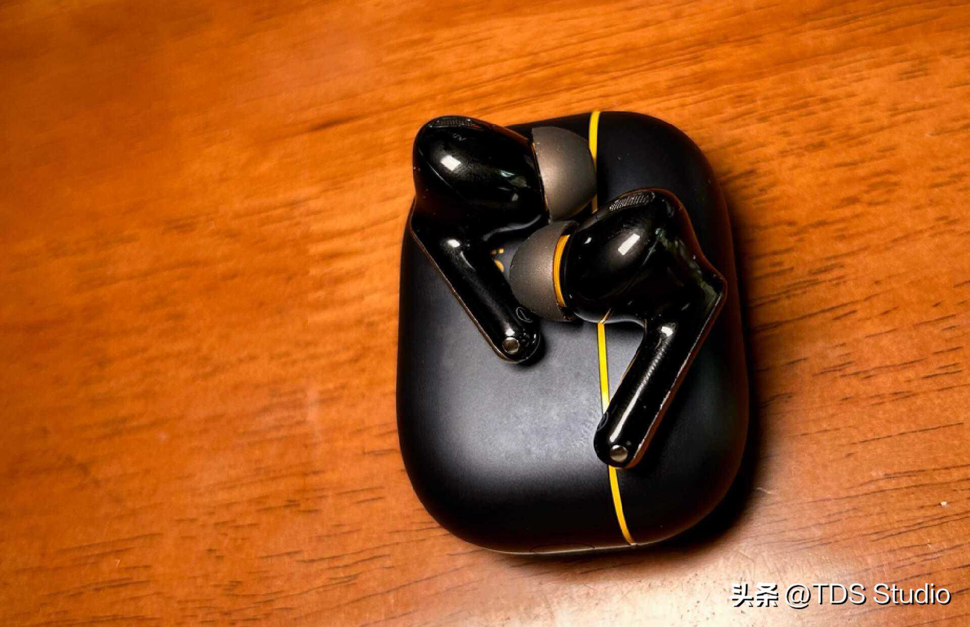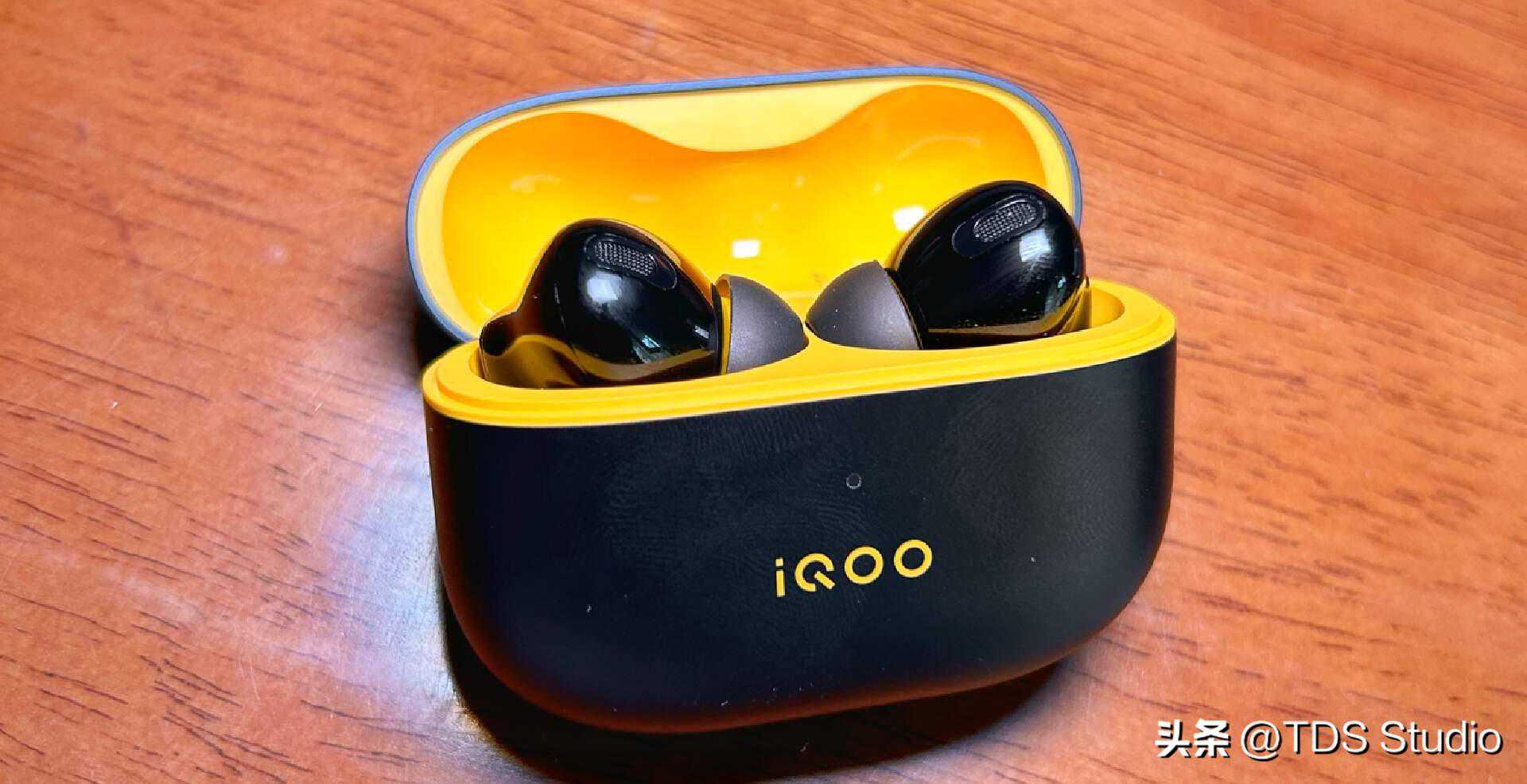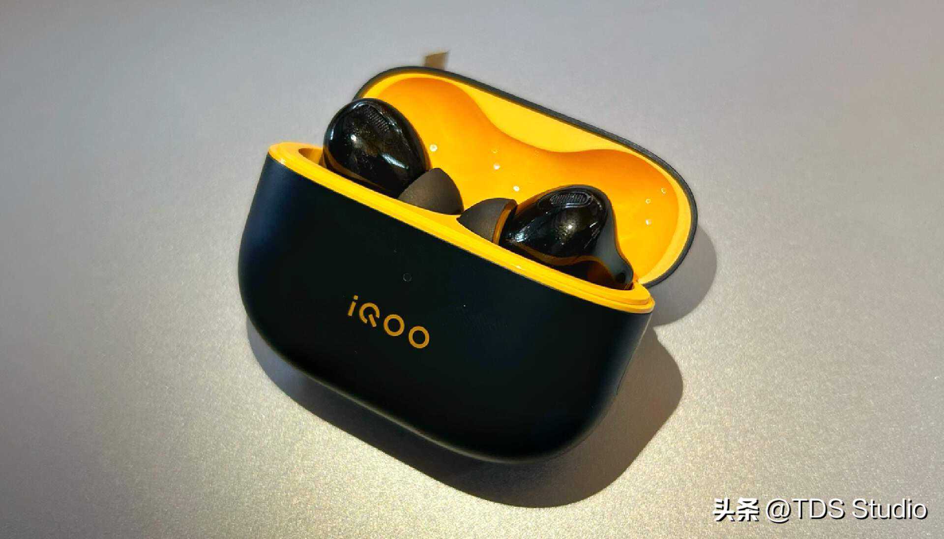 TWS2有两种配色提供,一种是和AirPods类似的白色,全白就显得怪没意思。所以我们这次讨论的也是更有iQOO自家特色的黑黄版本。我倒是希望那天可以出个红蓝白拼色的版本能跟自家数字系列手机的配色有所匹配。