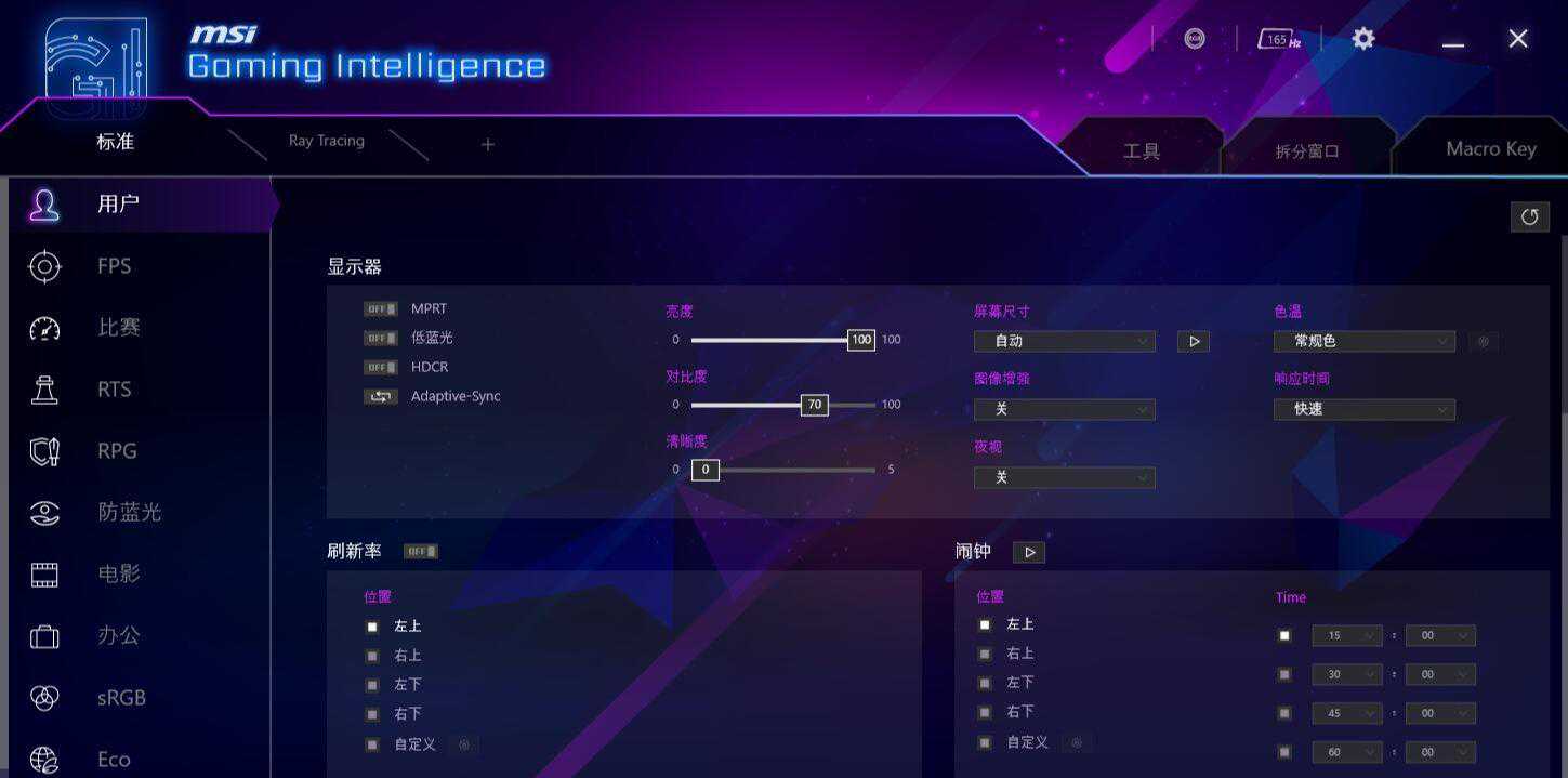 ▼除了常规参数之外,还可以设置一些特殊的设置,响应时间、Adaptive-Sync、色温等。
