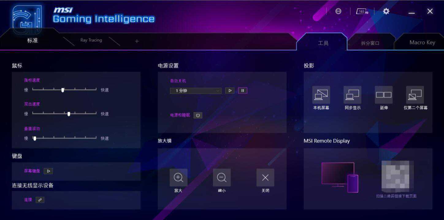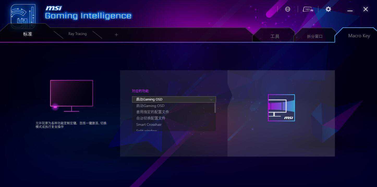 ▼微星这款显示器支持微星自家的OSD软件,可以在系统内部设置显示器的各种参数。