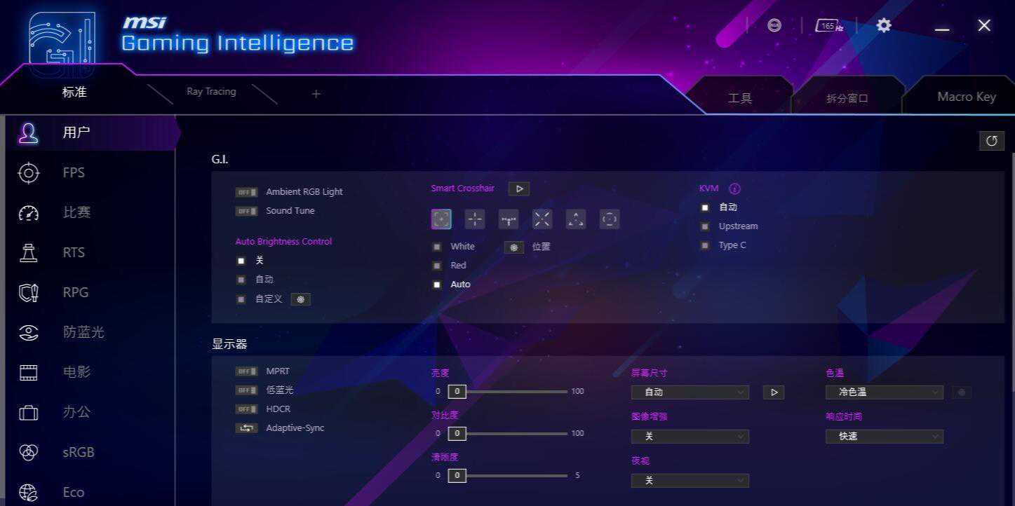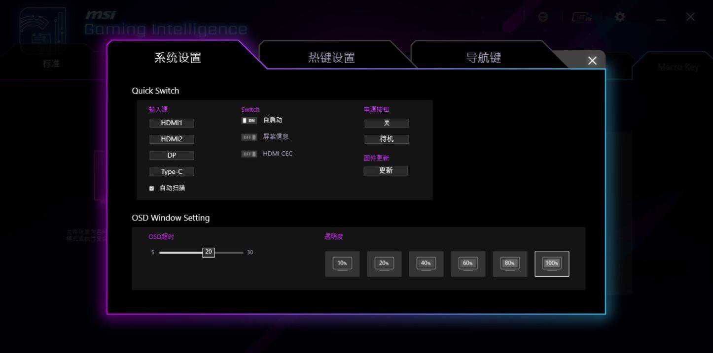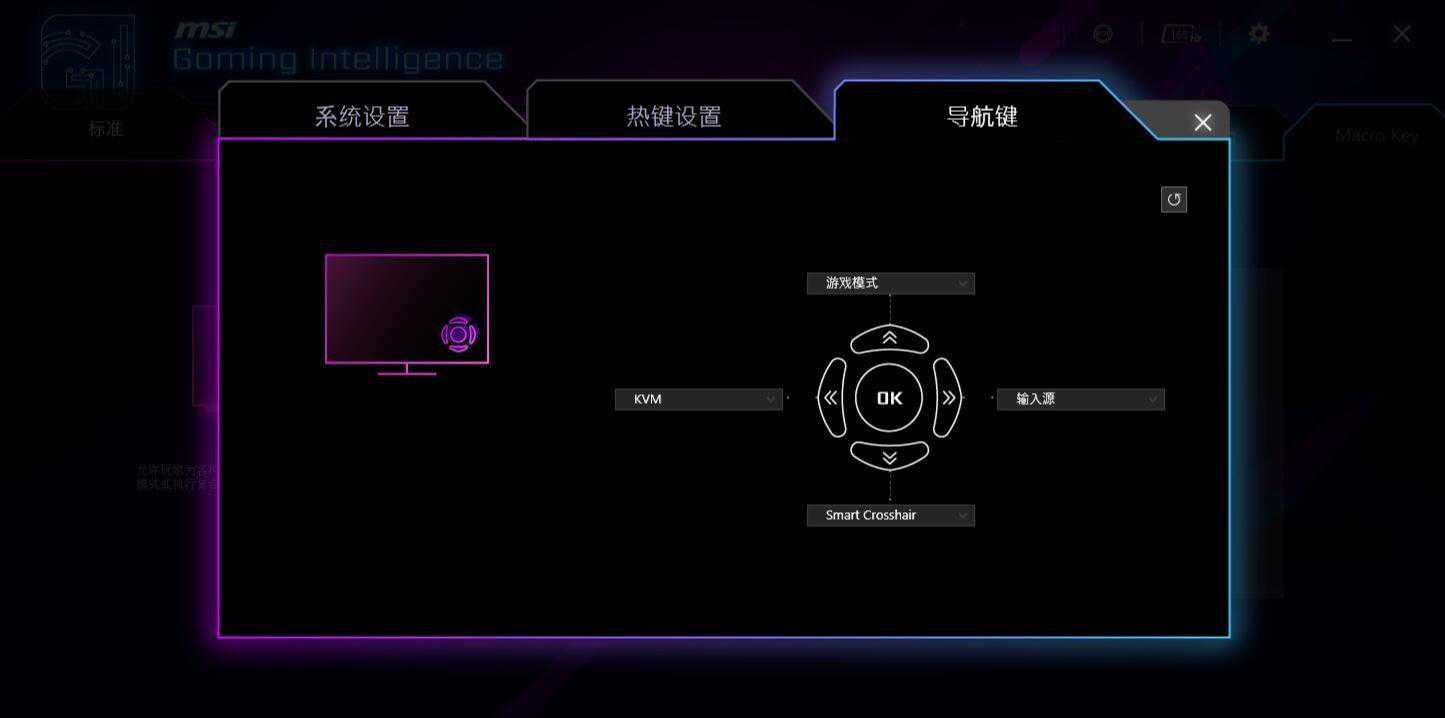 ▼微星这款显示器支持微星自家的OSD软件,可以在系统内部设置显示器的各种参数。