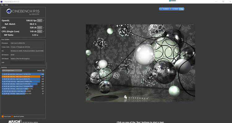 CinbenchR15,OpenGL108fps,