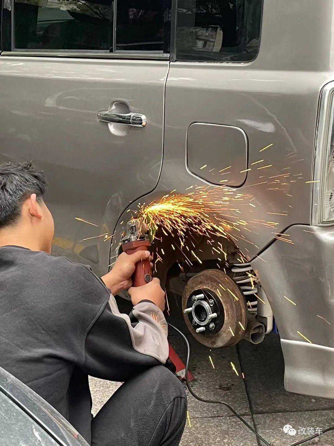"首先是行走方面,换上了一套DWD绞牙避震、定制轮毂和后轮-6度倾角垫片,让它变成一辆有姿态的‘面包车’。"