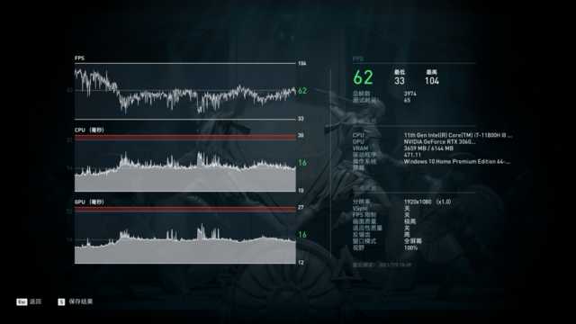 在1080P分辨率下开启最高特效,微星星际战神GL76的平均帧率达到了62FPS;而对于游戏本来说,能够特效全开下,还满足60FPS+,征服这款硬件杀手级的游戏,可谓是非常不容易!