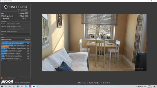 CINEBENCHR20:单核575pts,多核4343pts