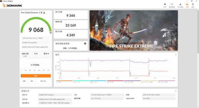 3DMarkFireStrikeExtreme得分9068,显卡分数9344