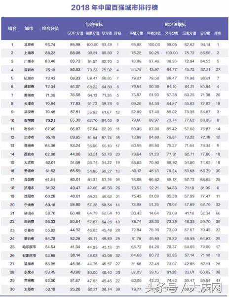 中国百强城市排行榜由华顿经济研究院按照CBT100指标体系编制,以GDP总量排名前100位的地级及以上城市作为入围城市,按照经济指标(占比61.8%)和软经济指标(占比38.2%)综合得分进行排序。